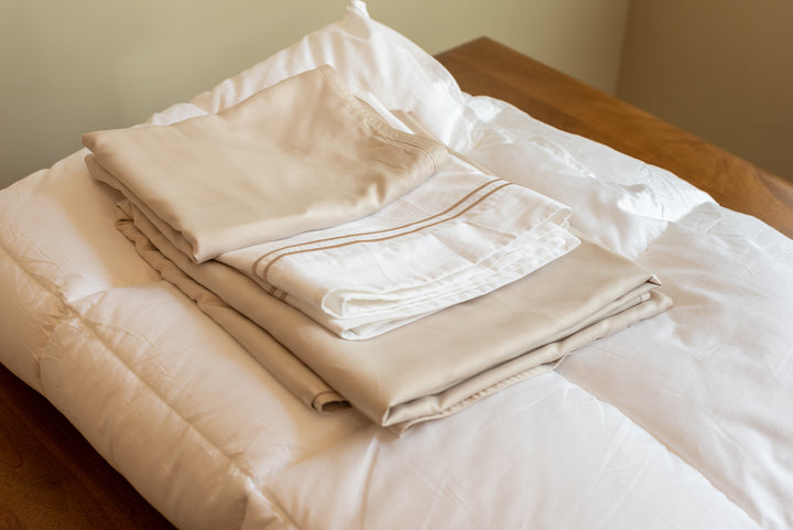 Crafted from 100% viscose derived from organically grown bamboo, the Undivided Comfort Queen Sheet Set features a twill weave that delivers a smooth yet subtly textured feel — lighter and cooler than sateen, with exceptional breathability and durability. Each set is STANDARD 100 by OEKO-TEX® certified (SH025 202814) and made without harmful chemicals or pesticides, ensuring the purest comfort for every night’s rest. Naturally hypoallergenic, moisture-wicking, and temperature-regulating, these sheets bring a perfect balance of luxury softness and everyday durability. Designed for those who love the crisp freshness of hotel bedding with the gentle touch of sustainable bamboo.